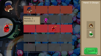 The gloops all have unique abilities that score points when they sing. The player needs to create harmonies of their gloops to beat each level, unlocking new gloops and swapping their current gloops as they progress.